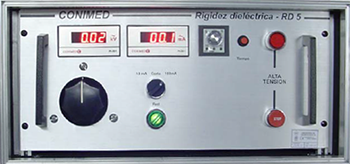 RD-5 Equipo de Rigidez de dieléctrica hasta 5 kV. Equipo para ensayo de tableros y artefactos de baja tensión. Llega hasta 5 kV y mide corrientes hasta 100 mA y corte programable en 10 mA y 100 mA.ye |